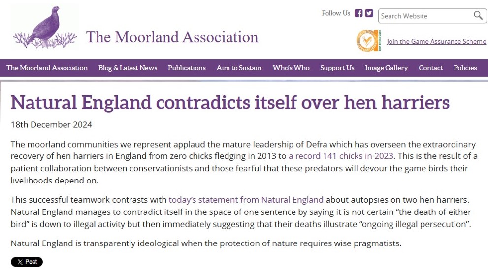 The Moorland Association (the grouse owners’ lobby group) has responded to Natural England’s blog with yet another blatant and shameful attempt at misrepresentation: