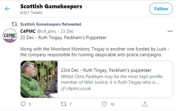They first started publishing these vindictive narratives in December 2020 (during a Coronavirus lockdown, no less) where each day they targeted a named individual known to campaign against driven grouse shooting. Those targeted included all the usual suspects (me, Chris Packham, various RSPB staff members, raptor fieldworkers, conservationists, even politicians), and guess who was involved in spreading that malicious abuse via their own social media accounts?