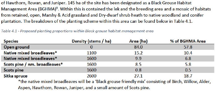 The GWCT then stated later in the report that ‘the inclusion of low-density mixed broadleaves and areas of open ground within the site are unlikely to sufficiently limit the impacts of the planting plan on wading birds or black grouse’, then suggesting a ‘comprehensive predator control programme as part of any mitigation measures’: