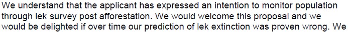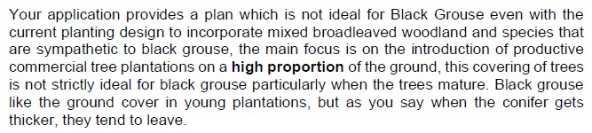 This is far from a glowing endorsement of the proposals or indeed any kind of acknowledgement that there would be no significant impacts on black grouse.