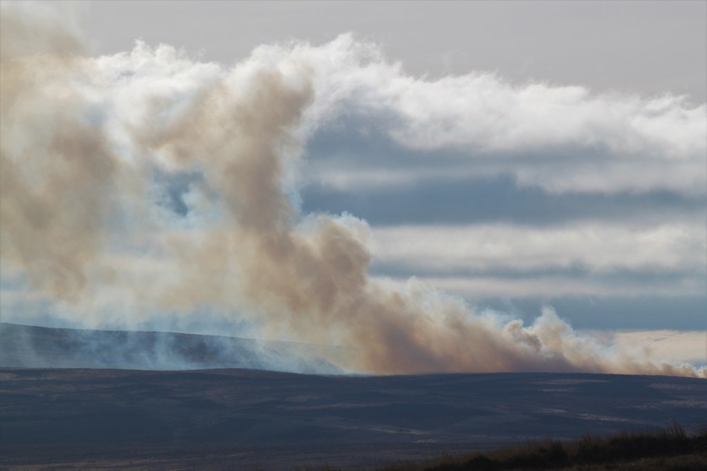 Toxic smoke heading towards Sheffield after gamekeepers set a grouse moor alight in the Peak District National Park. Photo by Ruth Tingay