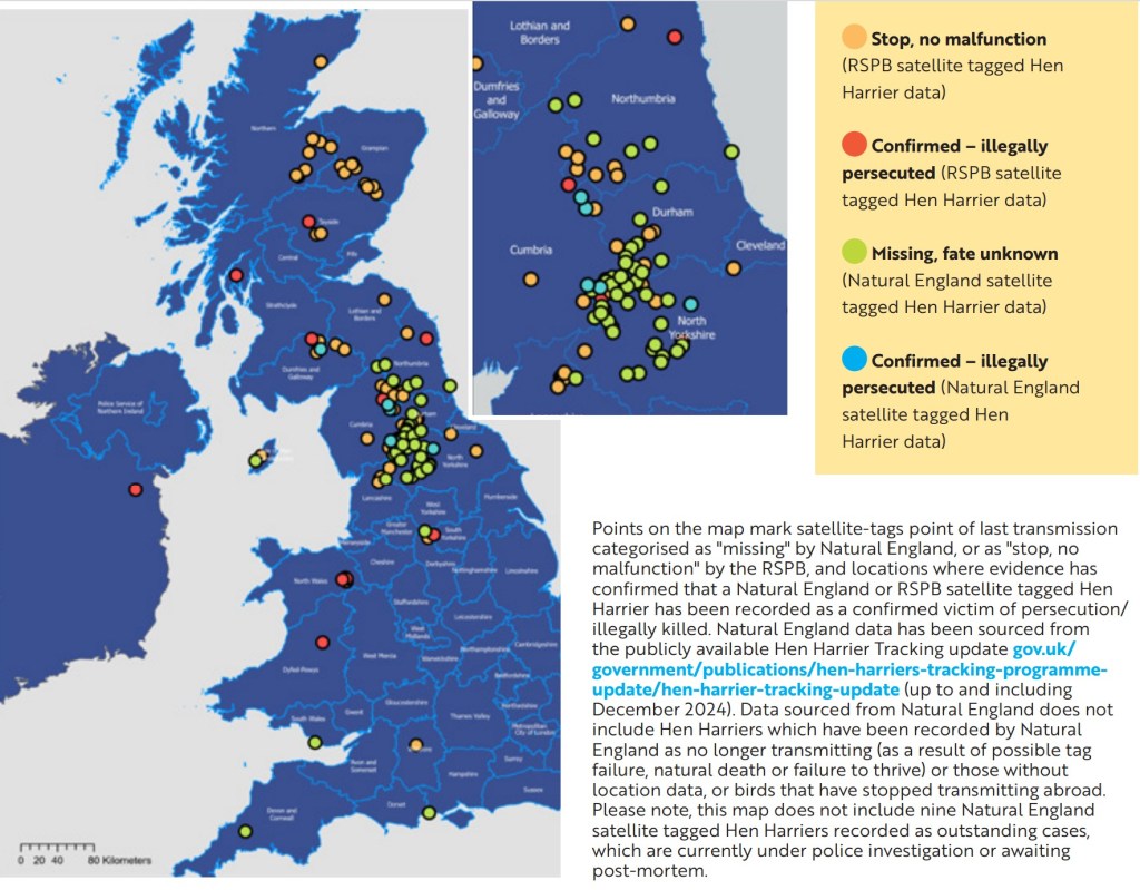 The RSPB is to be congratulated for putting this report together. A lot of the information contained within it is already well-known, but this report brings it all together in one place. What is new is the hotspot mapping of satellite-tagged Hen Harriers (both RSPB-tagged birds and Natural England tagged birds), and although the detail is coarse, the overall distribution pattern is clear, showing the main hotspots in areas where the land is intensively managed for driven grouse shooting.