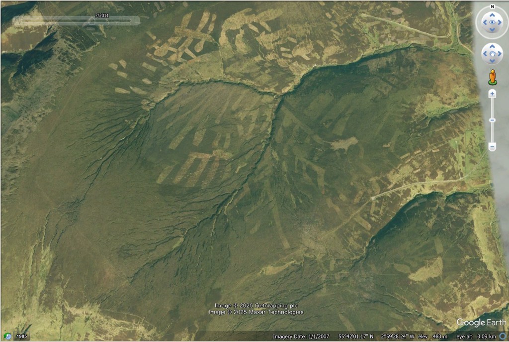 2. Whether mowing or burning (I actually think this is mowing) it tells the familiar story of cranking up the management for grouse to maximise numbers and the continuing development of the new* type of industrial landscape across British uplands – wherever there is potential for a DGS business to be viable. This has nothing to do with wildfire prevention, I am sure that this was a reasonabley wildfire resistant area in the earlier photographs. And the place will have produced a fair number of grouse back then too. Just not the correct amount – which is (in the owner / sporting tenants world) always the maximum amount that it can generate.