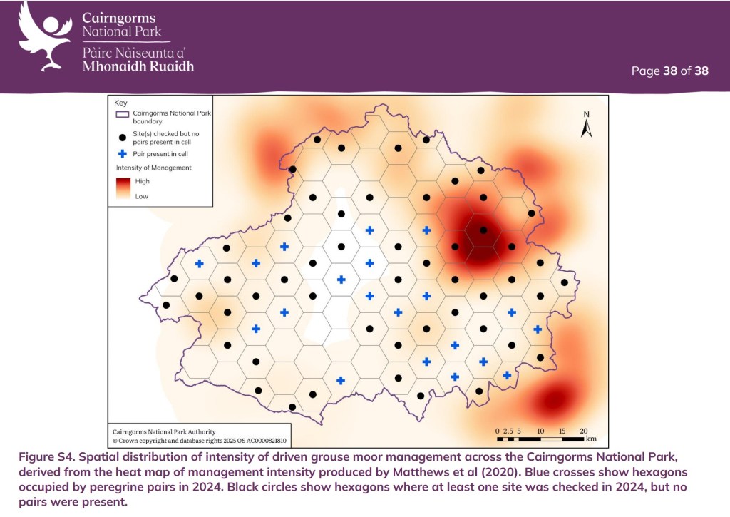 This latest report from the Cairngorms National Park Authority, based on fieldwork undertaken by the Scottish Raptor Study Group, is a welcome addition to the literature and will help inform the new requirement (under the Wildlife Management & Muirburn Act 2024) to monitor and report every five years on the status of a number of raptor species (Peregrine, Golden Eagle, Hen Harrier & Merlin) on grouse moors in Scotland as a measure of how well / badly the legislation is working.