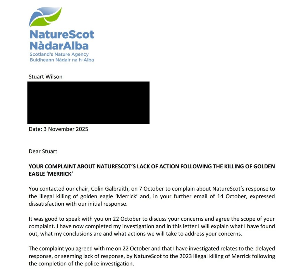 Blog reader Stuart Wilson has kindly given permission for me to share the response he received recently from NatureScot in relation to his complaint, which is almost identical to the response blog reader SusanH shared on this blog a few days ago on an unrelated post.