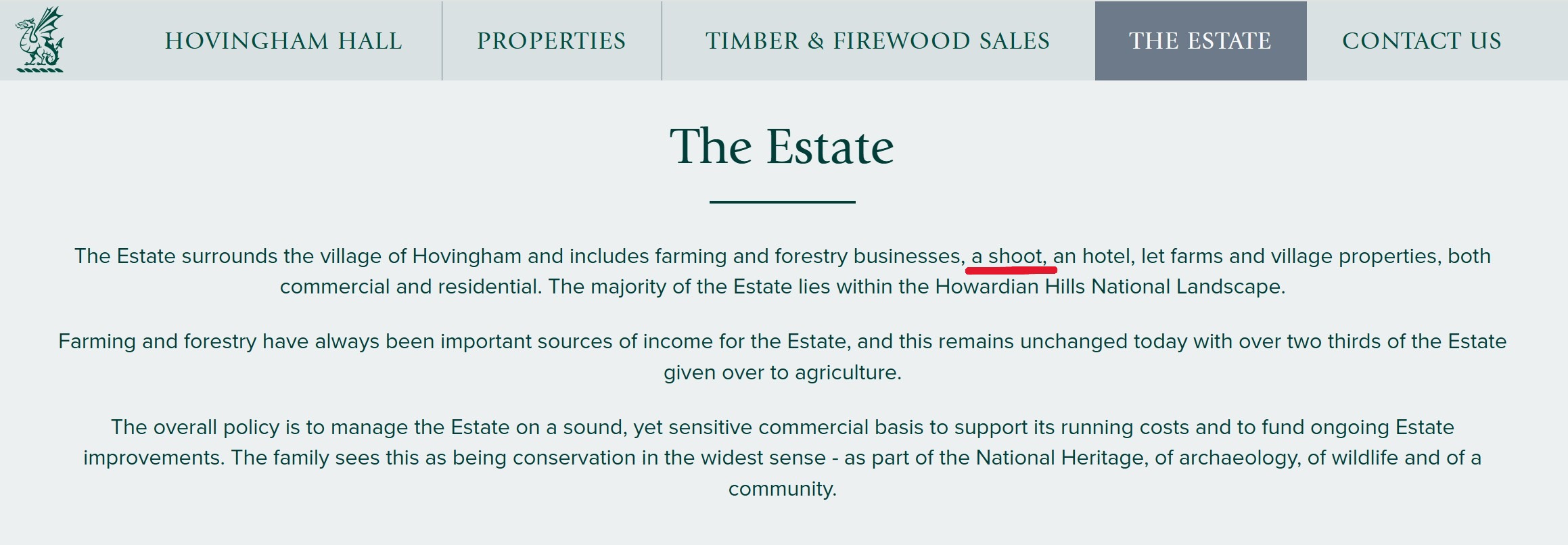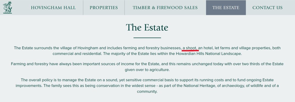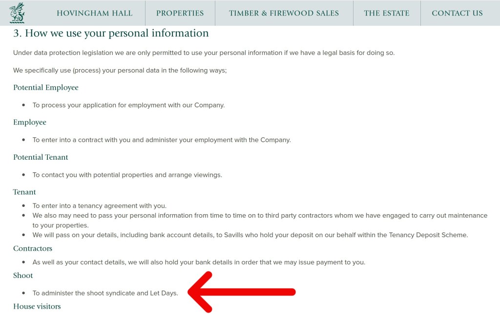 However, when I looked around the rest of the website, I couldn’t see any further mention of ‘a shoot’, until I looked at the estate’s privacy policy (dated 2024).