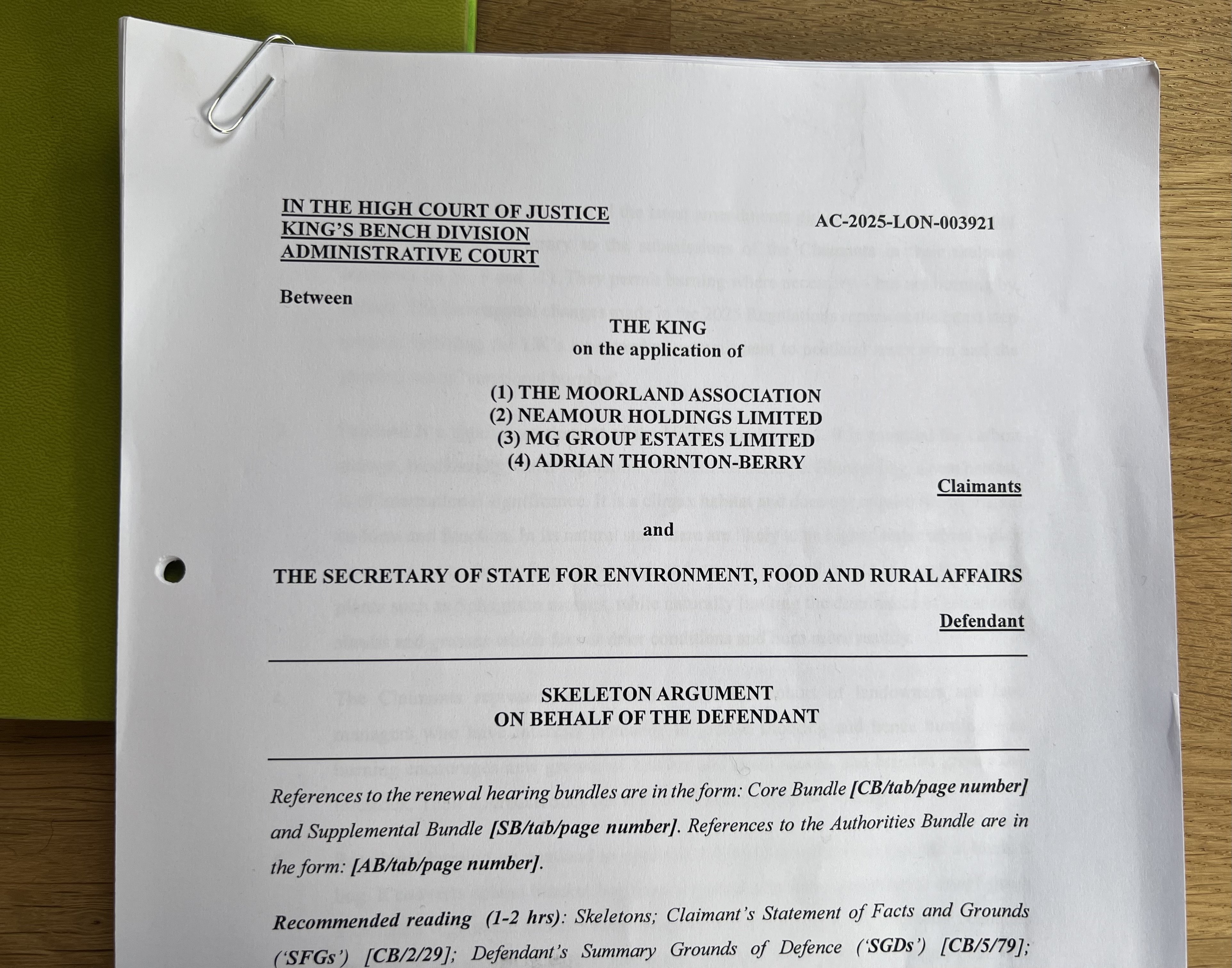 I mentioned in yesterday’s blog that three estates (members of the Moorland Association) were co-challengers in this case but that their identities weren’t known because the Moorland Association had only published redacted documents.