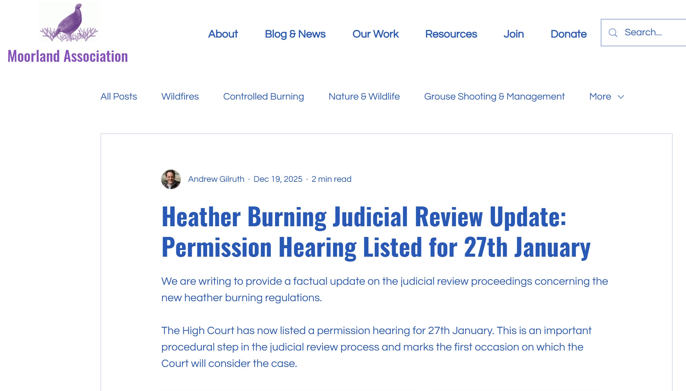 But that doesn’t seem to be how the Moorland Association has presented this case to the public. In a Moorland Association blog posted on 19 December 2025, the Moorland Association announces the date of the permission hearing as 27 January 2026 and writes, “This is an important procedural step in the judicial review process and marks the first occasion on which the Court will consider the case“. Hmm.