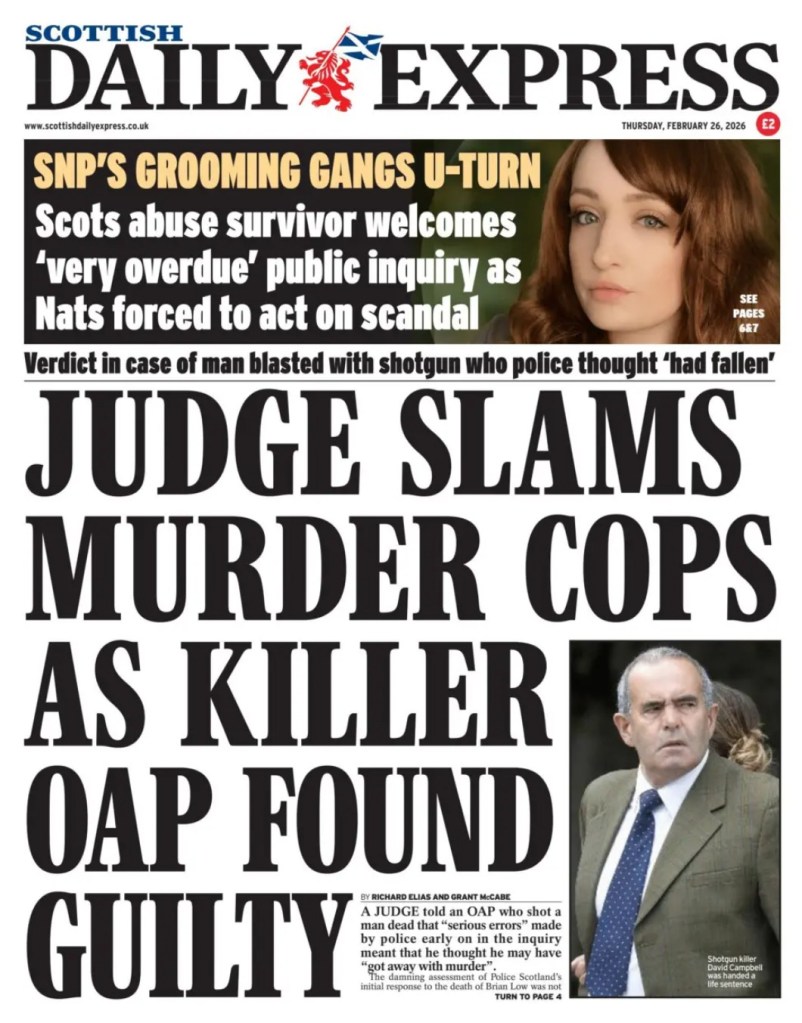 I do wonder on what background information Lord Scott based this statement. Whilst it’s true that Campbell had no previous convictions, it is indisputable that he was a suspect in multiple crime investigations spanning several decades, and that many in the local community lived in fear of him. And at some point his firearms and shotgun licences had been revoked, presumably on evidence that his suitability was questioned and/or he was considered a risk to public safety.
