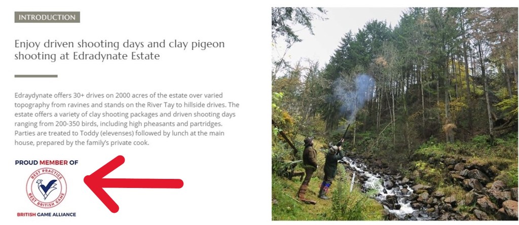 In 2020 Edradynate Estate was endorsed by the British Game Alliance, the game shooting industry’s own ‘assurance’ scheme (at the time), membership of which is supposed to indicate ‘rigorous and ethical standards’.