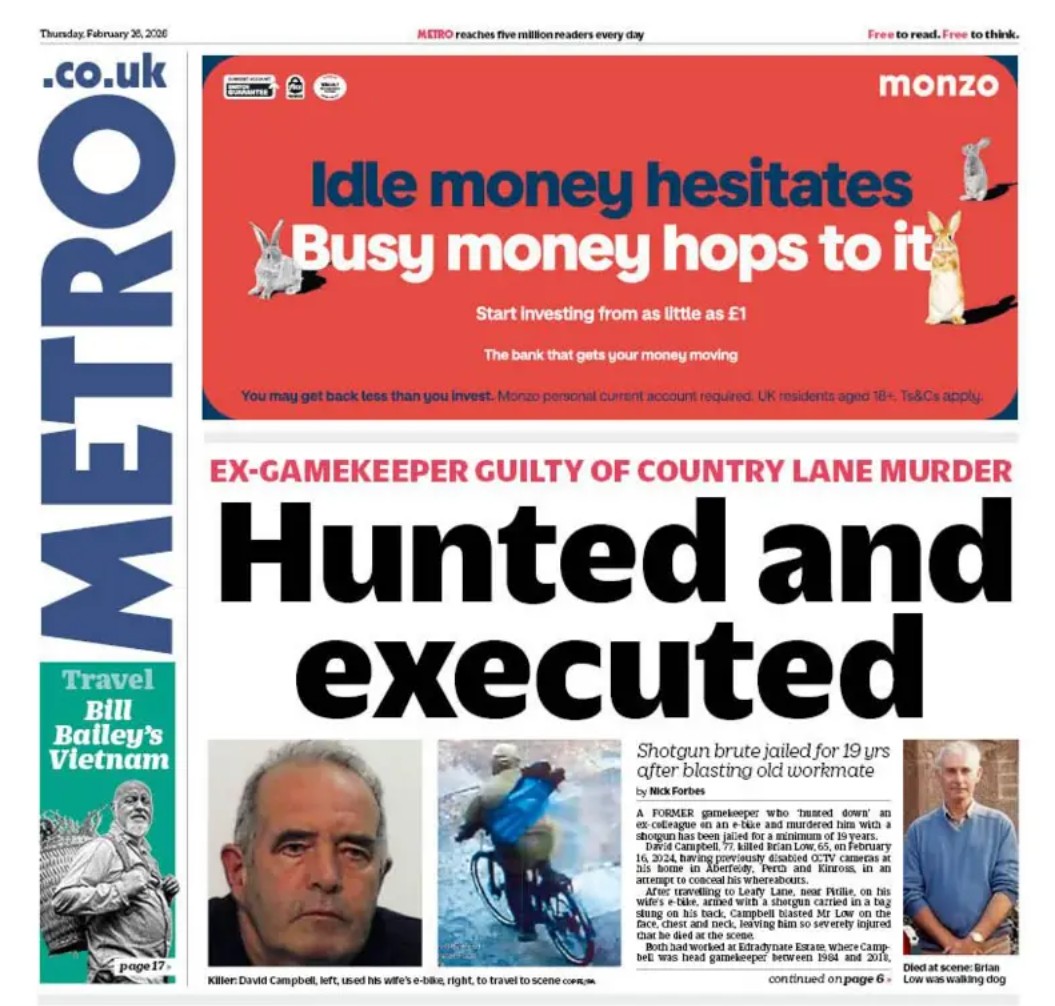 The circumstances of this horrific murder were shocking and understandably Campbell’s conviction made the headlines in widespread news coverage yesterday. For example: