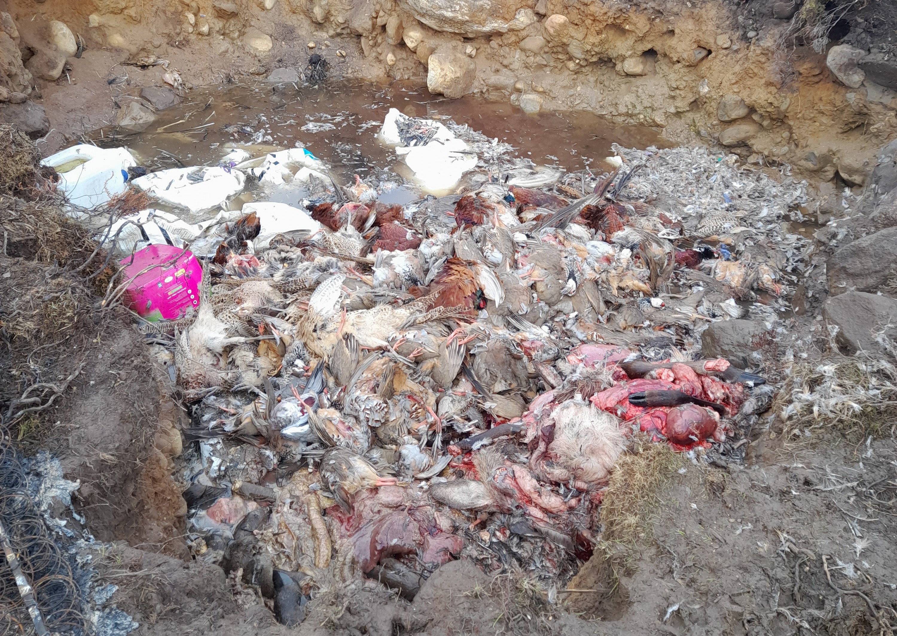 It appears that at least some of the gamebirds have been ‘breasted out’ – their breast meat removed, presumably for sale/consumption, and the carcasses then dumped in the pit.