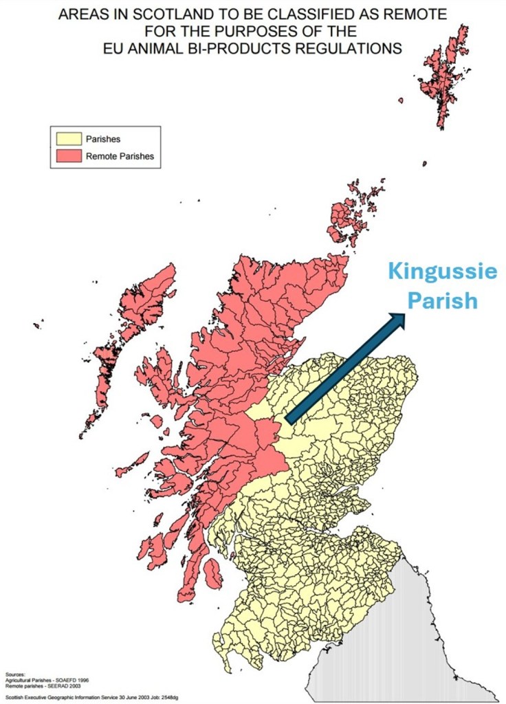 I need to do some more work on this, and talk to the local authority (Highland Council) who I believe would be responsible for enforcement of any breaches of the Animal By-Products legislation.