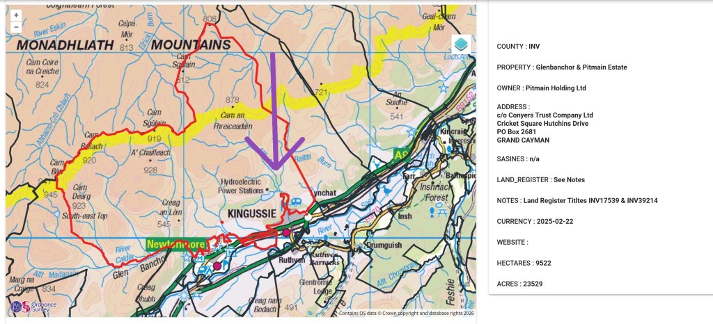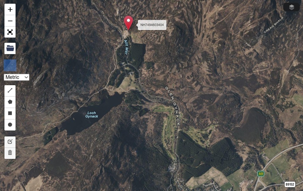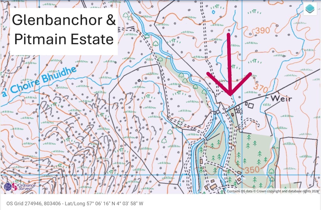 For the benefit of the Cairngorms National Park Authority, and anyone else who wants to take a look, here are the location details of the pit (estate boundary sourced from Andy Wightman’s Who Owns Scotland website):