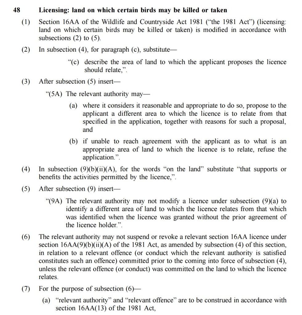 The amendment empowers NatureScot (the licensing authority) to “propose a different area to which the licence is to relate from that described in the [licensee’s] application“, and if unable to reach agreement with the applicant on the area, to refuse the application. My understanding is that this can’t be applied retrospectively (i.e. to licences already granted prior to this Act) without the landowner’s permission but will apply to all new licence applications from this point onwards. Its effectiveness, of course, will rely upon NatureScot’s appetite for standing up to the powerful landowner/shooting lobby – let’s see how that works out, because recent experience doesn’t inspire much confidence.
