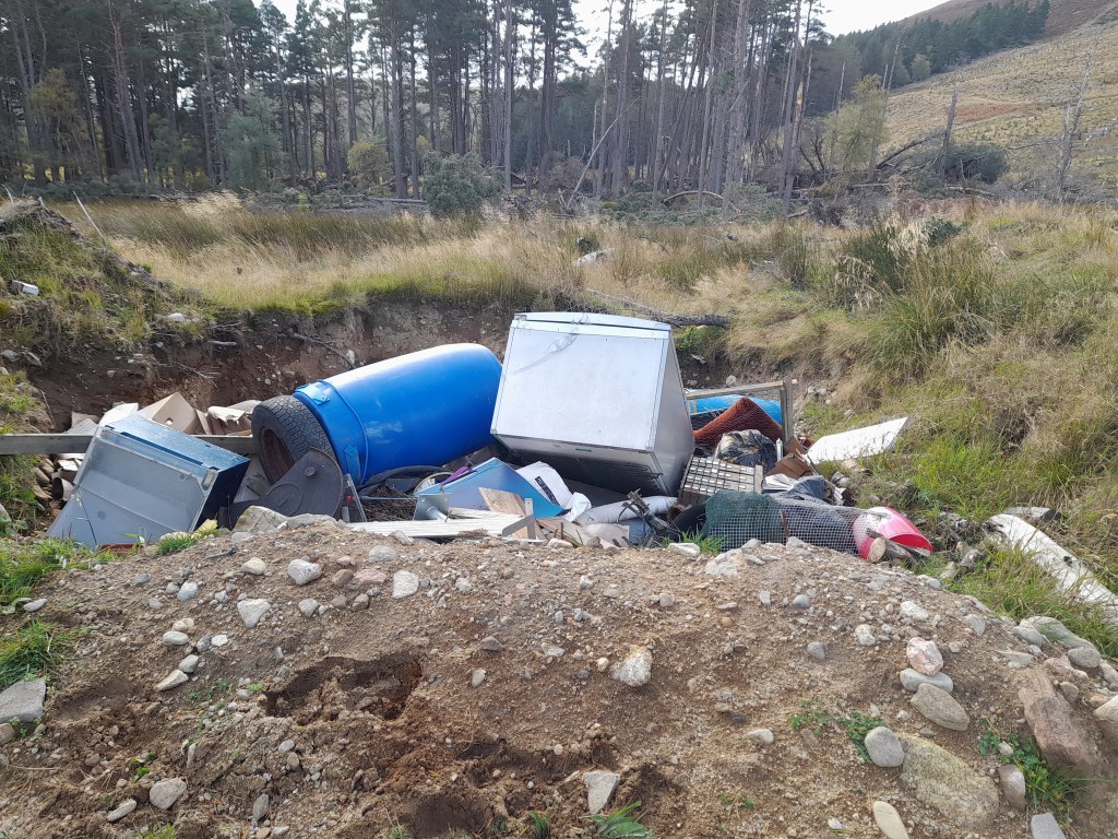 The walker who discovered this dumping pit told me they’d reported it as a potential fly-tipping incident to Highland Council but they didn’t receive any response.