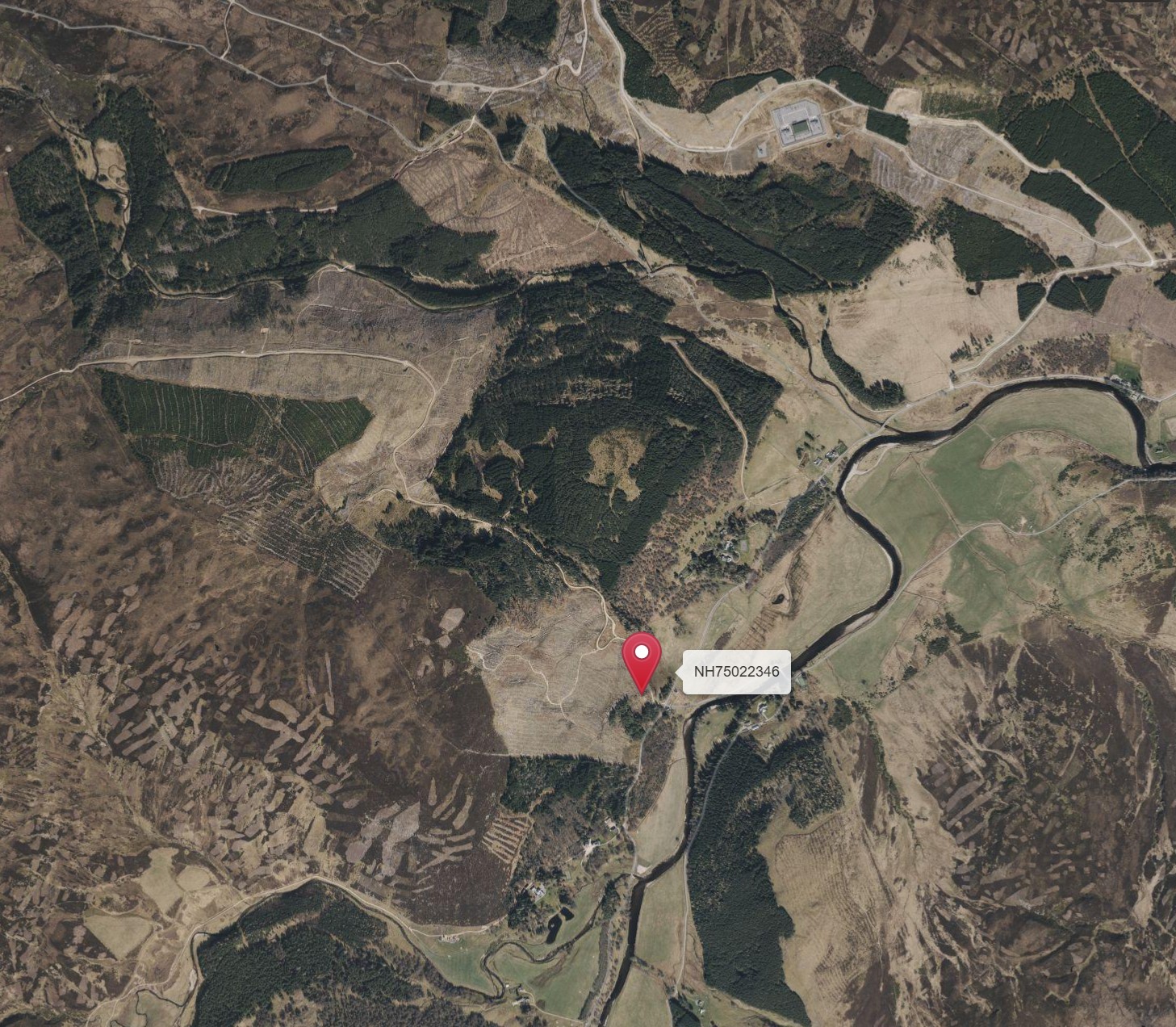 The pit’s location is at NH75022346, which according to Andy Wightman’s Who Owns Scotland website, is Garbole Forest, very close to the estate boundaries of Glen Kyllachy & Farr Estate, and Glenmazeran Estate.