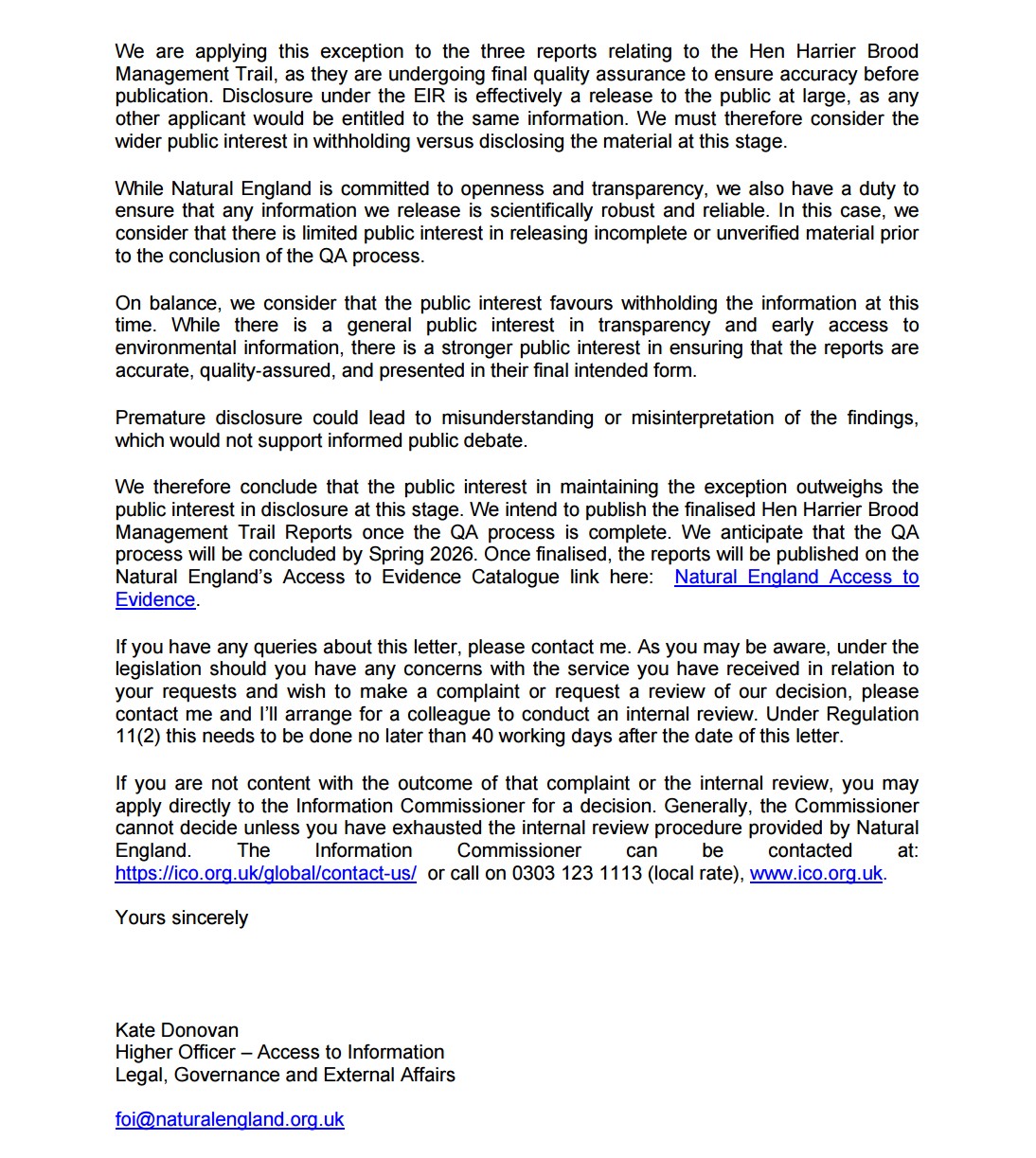 So I waited a further six and a half months, until 5 January 2026, before asking Natural England for a status update on its now long overdue internal review.