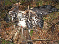 MARCH 2011: The body of a young golden eagle was discovered on North Glenbuchat Estate, Aberdeenshire. Tests revealed it had been poisoned by the illegal pesticide Carbofuran. Grampian Police launched an investigation and raided the property in May 2011. Two years and 7 months later, nobody has been prosecuted.