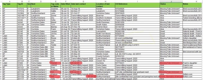 7 September 2020: Hen harrier Dryad ‘disappeared’ on a grouse moor in the Yorkshire Dales National Park (here)