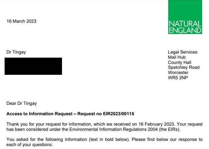 You’ll note that what NE published was just an ‘overview’, and regular blog readers will know that in February 2023 I submitted an FoI request asking for a copy of the full NESAC report, only to be told by NE that there apparently wasn’t one (see here).