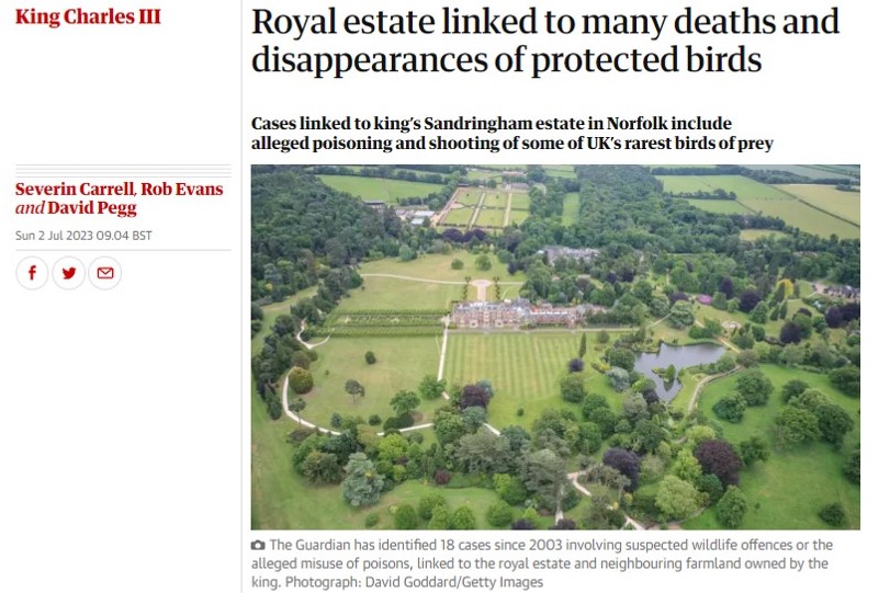 The Royal’s Sandringham Estate and surrounding farmland in Norfolk has been frequently linked to the alleged deaths and disappearances of birds of prey over the years (see here for previous blog).