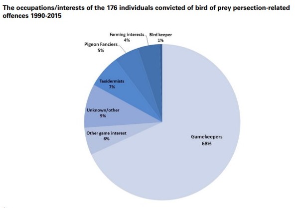 Of course, it comes as no surprise that those within the bird shooting industry would want to mislead the public – as this pie chart reveals, gamekeepers are responsible for the vast majority of UK raptor persecution crimes: