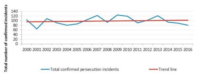 - There were no prosecutions for these persecution offences, the first time this has happened in 30 years.