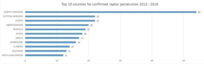 The county of North Yorkshire once again comes top of the raptor-killing leader board, way ahead of every other county. Many of these crimes have taken place on driven grouse moors:
