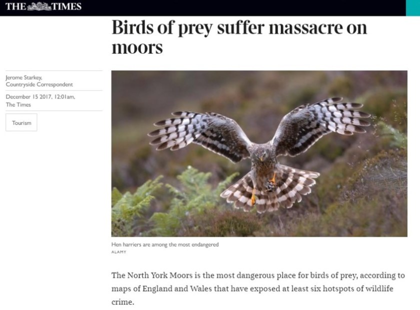 Hen harrier Rowan – found dead in Yorkshire Dales National Park. He’d been shot (Oct ’16).