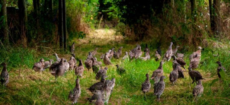 Previous Image Next Image Seven week old pheasant chicks, often known as poults, after just being released into a gamekeepers release pen on an English shooting estate P28PYW Seven week old pheasant chicks, often known as poults, after just being released into a gamekeepers release pen on an English shooting estate