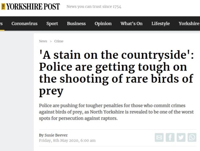 UPDATE 30 May 2020: Channel 4 News highlights raptor persecution on North Yorkshire grouse moors (here)