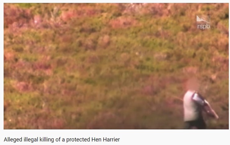 [A screen grab from an RSPB video showing the alleged shooting of a hen harrier on a grouse moor]