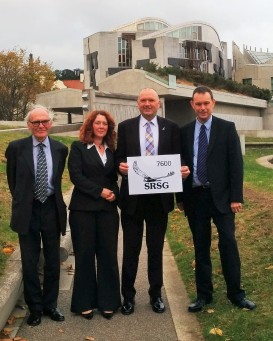 [SRSG members Patrick Stirling-Aird, Andrea Hudspeth, Logan Steele and Duncan Orr-Ewing outside the Scottish Parliament building. Photo by SRSG]
