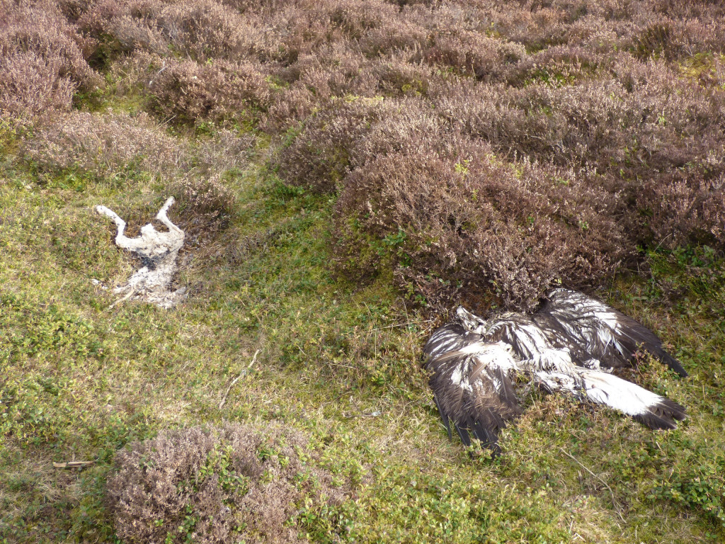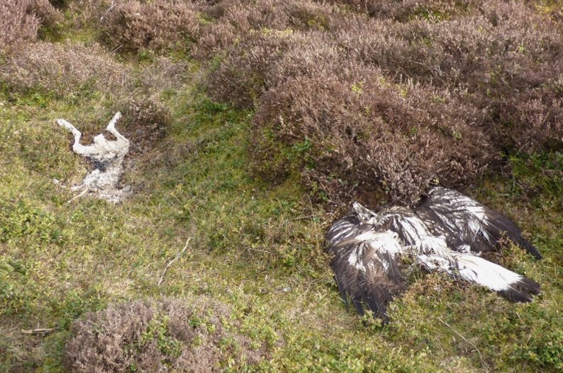 [Photo of the poisoned eagle & hare bait found on a grouse moor on Invercauld Estate in the Cairngorms National Park. Photo by RSPB Scotland]