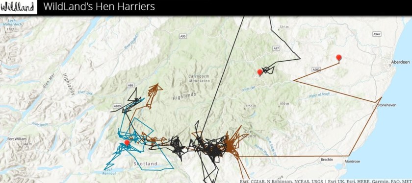 Earlier this month we learned that two satellite-tagged hen harriers (Wildland hen harrier 1 and Wildland hen harrier 2) had ‘disappeared’ in suspicious circumstances on two grouse moors in September 2019, one within the Cairngorms National Park and one right on the Park boundary (see here). We don’t recall seeing any statement from the Cairngorms National Park Authority.
