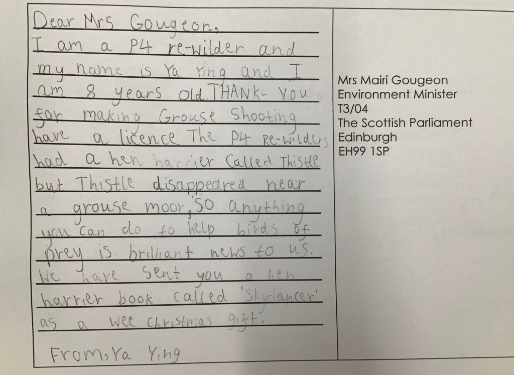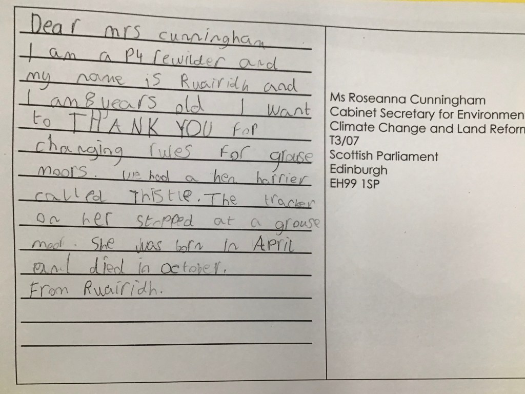 These school kids are only too well aware of what happens to raptors on some driven grouse moors, as they had named and were following an RSPB satellite-tagged hen harrier (‘Thistle’) in 2019 that later disappeared in suspicious circumstances on a grouse moor in Sutherland (see here).