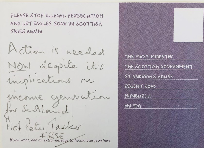 This is the protocol we follow for our satellite-tagged golden eagles and we’re also aware it’s the same protocol the RSPB follows for their satellite-tagged hen harriers. Contrary to the myths, lies and slurs constantly churned out by the Scottish Gamekeepers Association and Scottish Land and Estates et al, we have worked hard to build up a mutually trusting working relationship with the NWCU (helped enormously, it has to be said, by the new head of unit, Chief Inspector Lou Hubble) and this protocol is working exceptionally well. Indeed, we’ve been using it this very week.