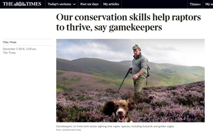 Earlier today The Times ran a story based on the Gift of Grouse propaganda entitled ‘Our conservation skills help raptors to thrive, say gamekeepers’. It includes an amusing quote from RSPB Scotland spokesman James Reynolds, who dismissed the report as “a pile of risible, make-believe tosh“. He added: