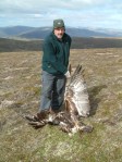MAY 2008: A one year old male white-tailed eagle hatched on Mull in 2007 and known as ‘White G’ was found dead on the Glenquoich Estate, Angus. Tests revealed he had been poisoned by an unusual concoction of pesticides that included Carbofuran, Bendiocarb and Isofenphos. A police search in the area also revealed a poisoned buzzard, a baited mountain hare and 32 pieces of poisoned venison baits placed on top of fenceposts on the neighbouring Glenogil Estate. Laboratory tests revealed the baited mountain hare and the 32 poisoned venison baits contained the same unusual concoction of highly toxic chemicals that had killed the white-tailed eagle, ‘White G’. Three years and 11 months later, nobody has been prosecuted.