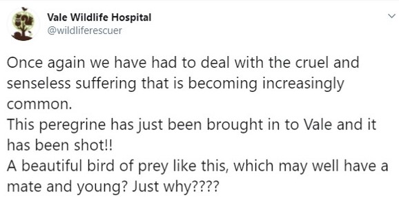 [The shot peregrine, photo from Vale Wildlife Hospital]