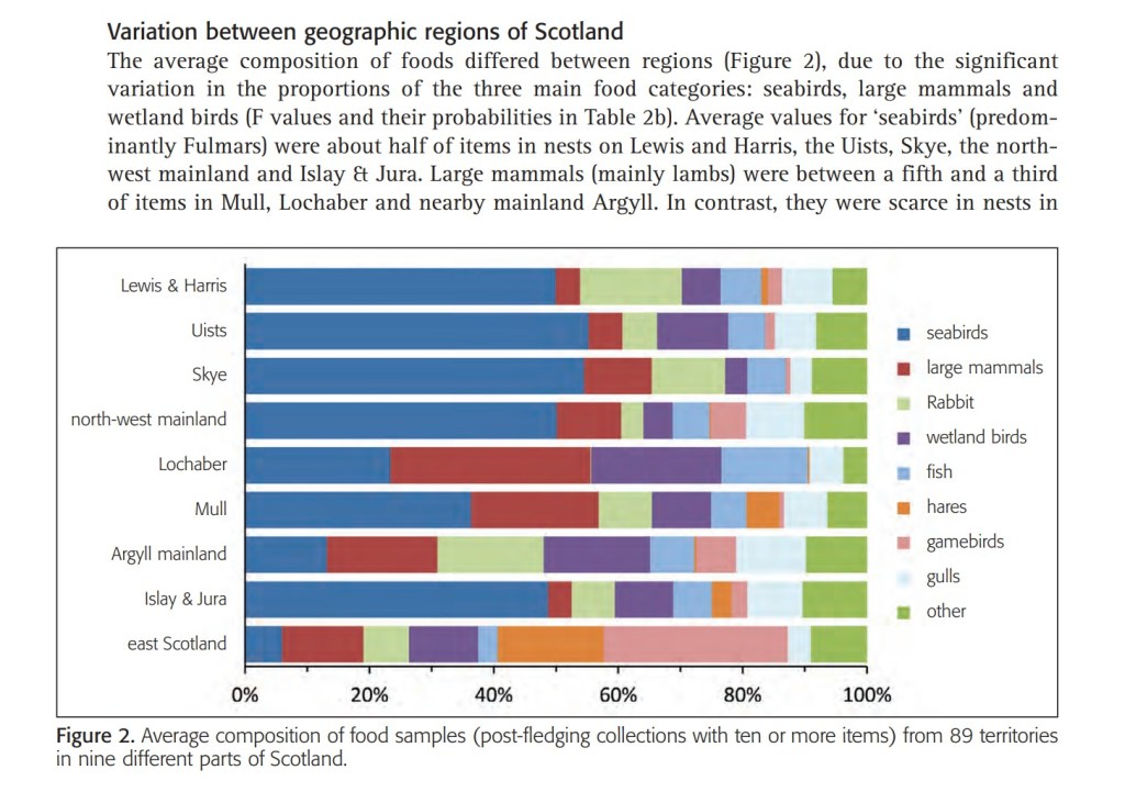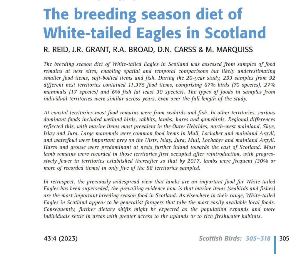 This fits with the findings of a recent and extraordinarily robust recent scientific paper, examining the diet of breeding White-tailed Eagles across Scotland over a 20-year study (1998-2017), where seabirds and wetland birds featured prominently in the diets of eagles on the Uists: