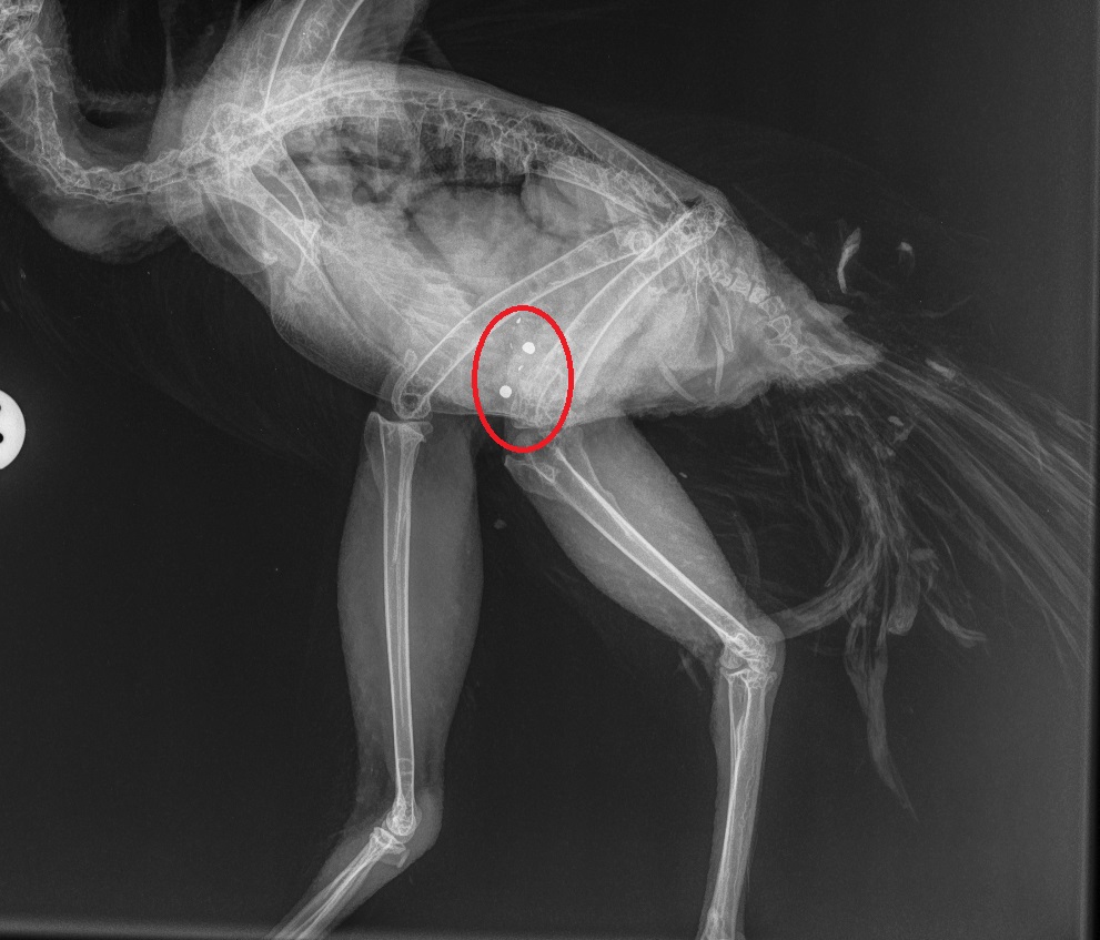 An x-ray revealed at least two shotgun pellets lodged in its body. It’s not known when the bird was shot, or where.