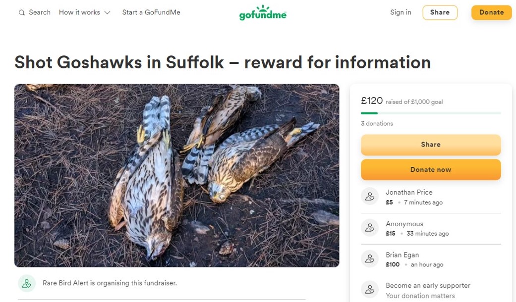 “Can we assume the RSPB has more information on the matter than BASC as they were very quick yesterday to offer a £5,000 reward for information leading to conviction; shortly followed by a similar pledge from Wild Justice? It would be useful to know whether RSPB are complainants, victims, witnesses or have any other relationship with Suffolk Constabulary“.