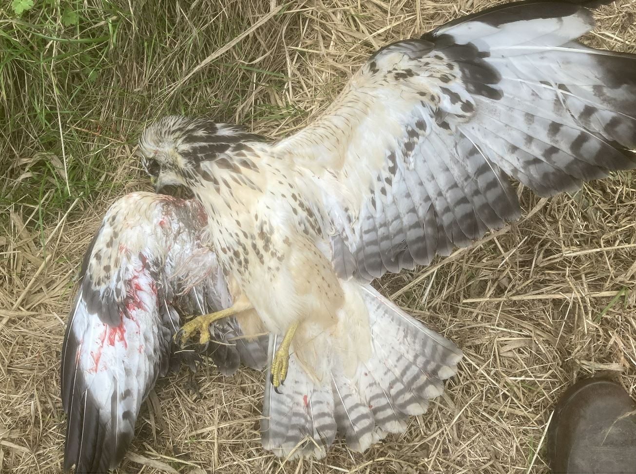 [This male hen harrier died in 2019 after his leg was almost severed in an illegally set trap that had been placed next to his nest on a Scottish grouse moor (see here). Photo by Ruth Tingay]