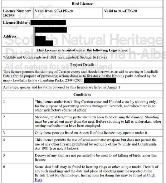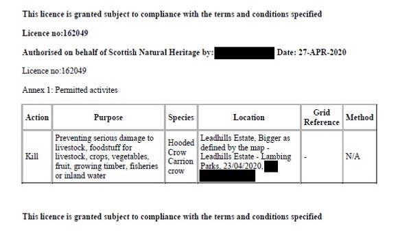 UPDATE 30th September 2021: Extension of General Licence restriction at Leadhills Estate confirmed as pitiful 8 months (here)